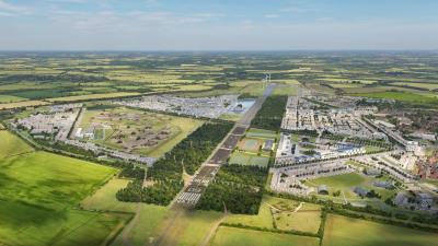 With over 60% of the site allocated to green infrastructure, the project will enhance biodiversity and offer extensive areas for recreation. The new Central Runway Park, designed by Kim Wilkie, will create a mosaic of orchards, allotments, wood pasture, grazed limestone meadows, reed beds, and native woodland. Water will be carefully managed and retained on site with an expansive boating lake beside the runway and a network of attenuation canals.