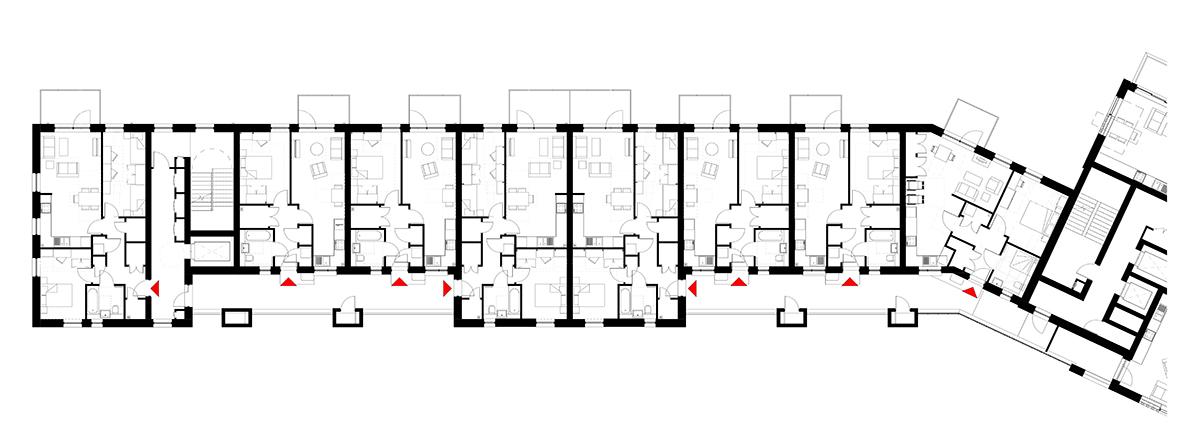 A carefully considered public realm strategy introduces new social spaces, civic squares, and pedestrian-priority streets to foster walkability and cycling. Smaller neighbourhood courtyards and shared landscaped areas soften parking provision and frame active street frontages, reinforcing a sense of community and belonging throughout the development.