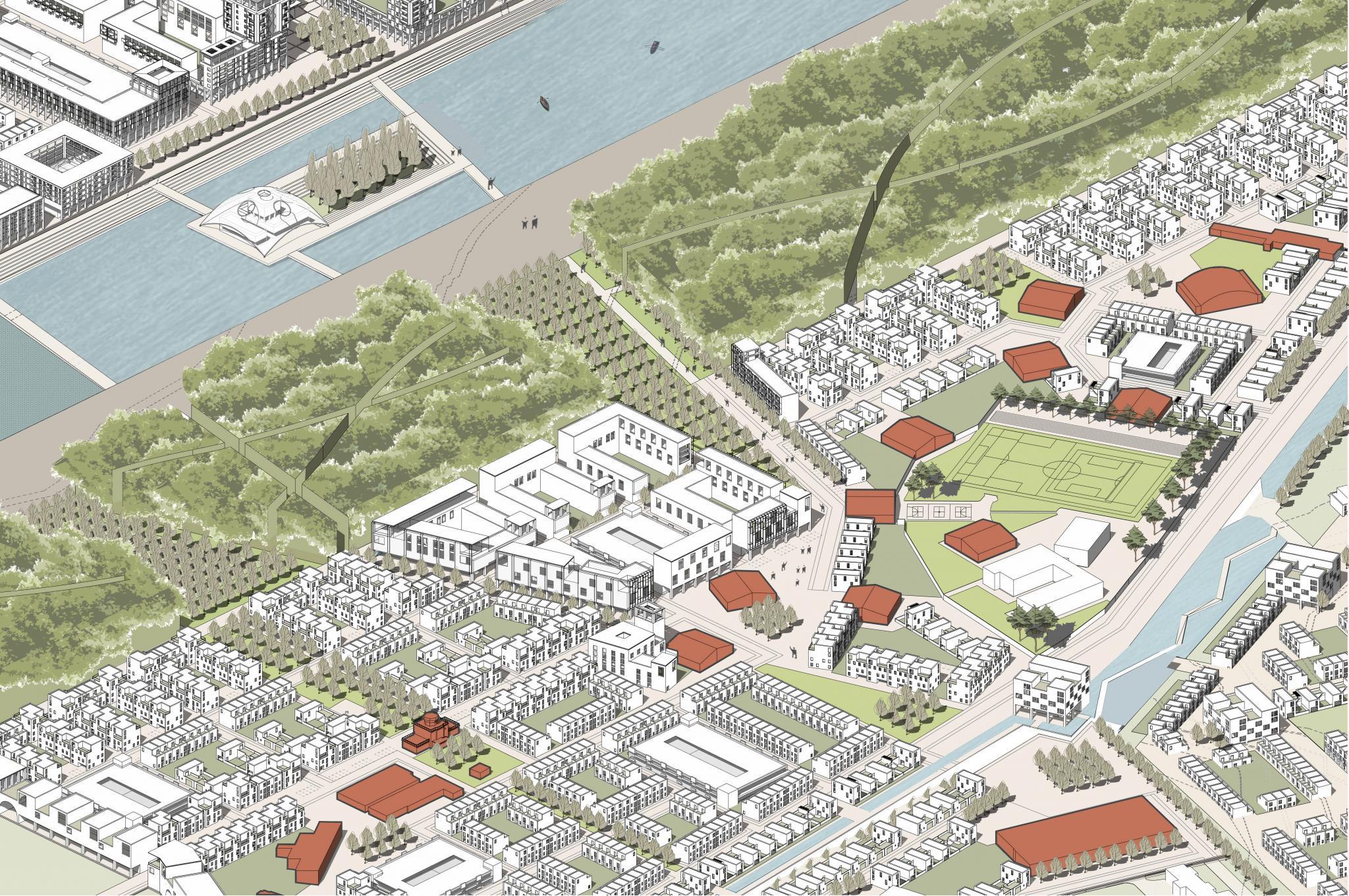 With over 60% of the site allocated to green infrastructure, the project will enhance biodiversity and offer extensive areas for recreation. The new Central Runway Park, designed by Kim Wilkie, will create a mosaic of orchards, allotments, wood pasture, grazed limestone meadows, reed beds, and native woodland. Water will be carefully managed and retained on site with an expansive boating lake beside the runway and a network of attenuation canals.
