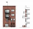 The two new buildings (buildings A and B) are arranged around communal gardens shared by the residents of each cluster. This configuration re-establishes a coherent urban structure of defined street frontages and thresholds. A new landscaped pedestrian-priority lane between the clusters provides access to both residential courtyards and improves connectivity and permeability within the public realm.