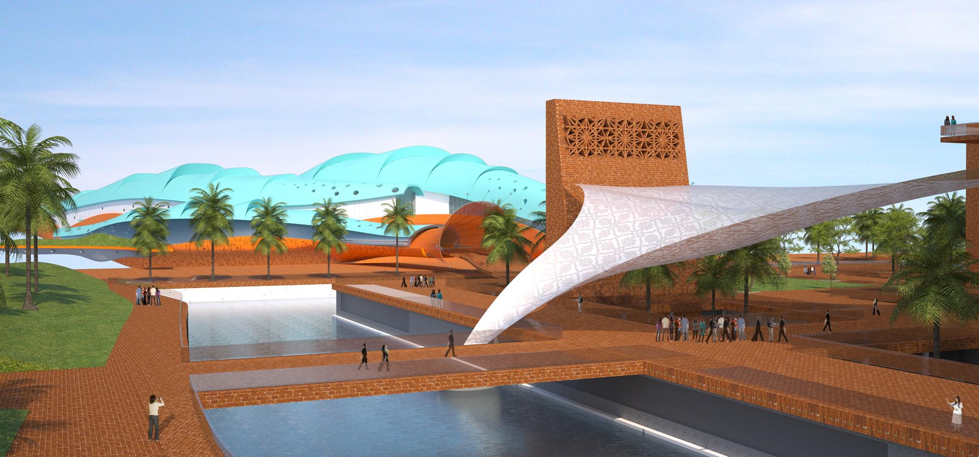The design for this large landscape serves as a counterpoint to the more flamboyant and noisy characters of the Konkan Village to the east, the themed water park experience to the north and the zoomorphic forms of the Oceanarium that is set immediately to the west on the forested escarpment facing the Indian Ocean.